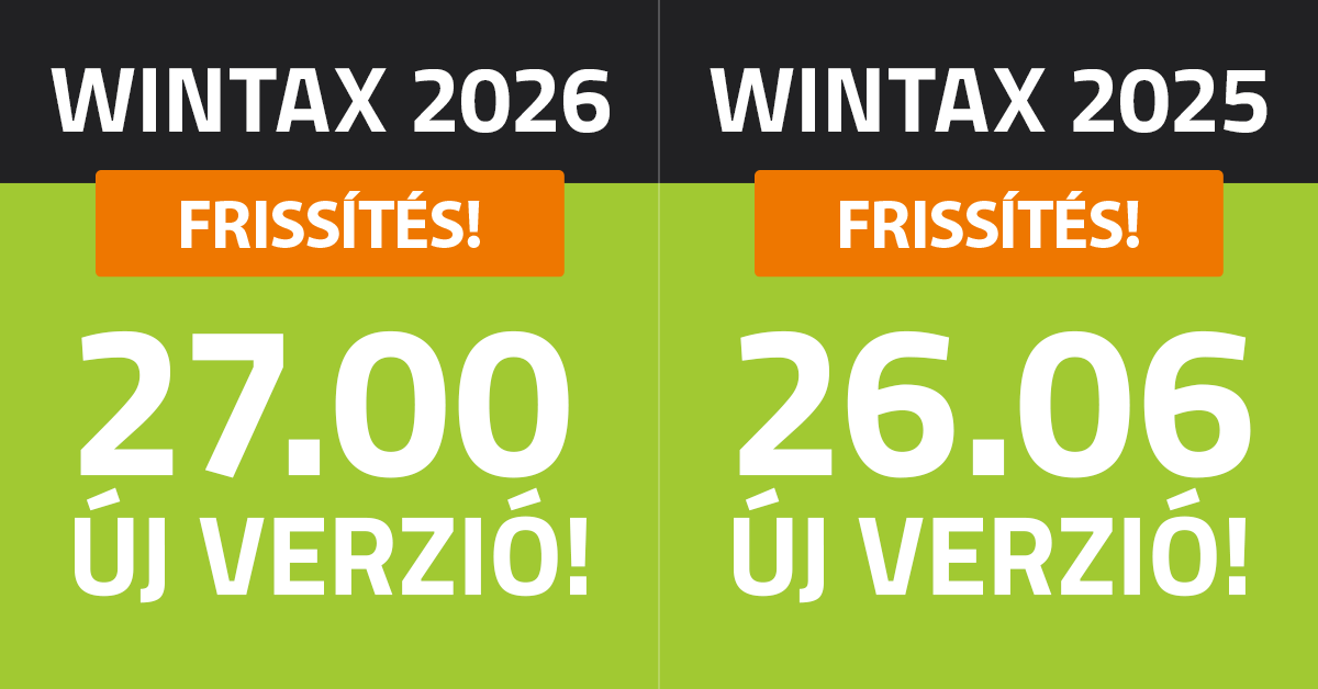 Elérhető a WINTAX 2026 és a WINTAX 2025 programrendszerek új, 27.00-s és 26.06-os verziója